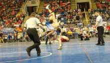 The South Border Mustangs are improbable state dual champions. The Mustangs won eight of fourteen matches including falls from Nathan Schauer, Lucien Peterson, Hunter Wold, and Jon Shockley. In the end, it was the decisions down the stretch that made the difference. With Carrington leading 34-33 with two matches to go, South Border scored wins…